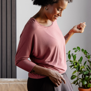 "Tellement confortable! La taille est parfaite et tient bien, sans serrer. Si je pouvais, je ne porterais que ça!"
